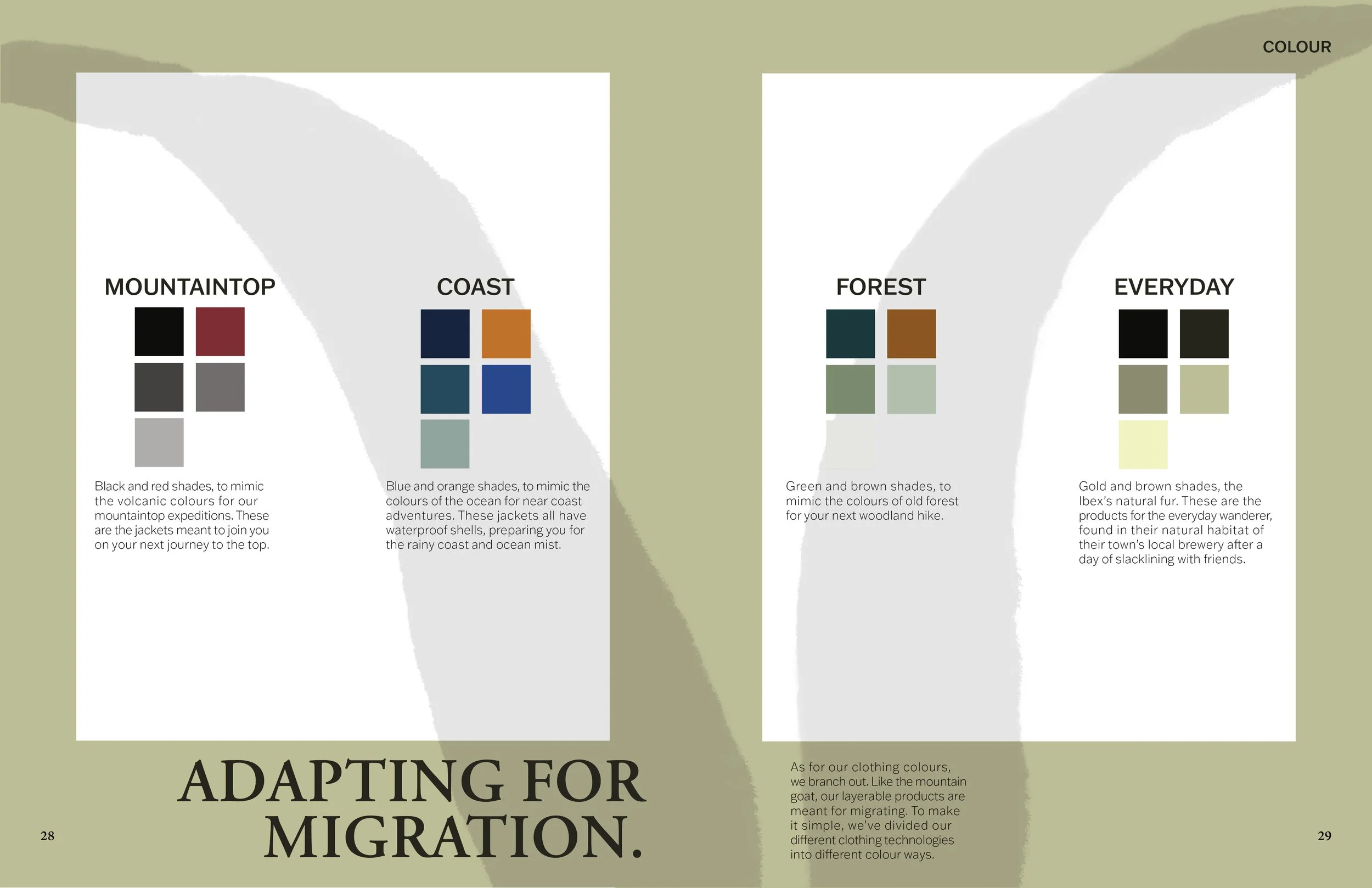 The branding included in-depth target market research, I aimed to create this rebrand with specific customer values in mind. It also included newly designed copyright, brand colours, and brand imagery. To highlight Ibex’s commitment to the environment and longevity of their clothing, the rebrand also included added post-purchase services.